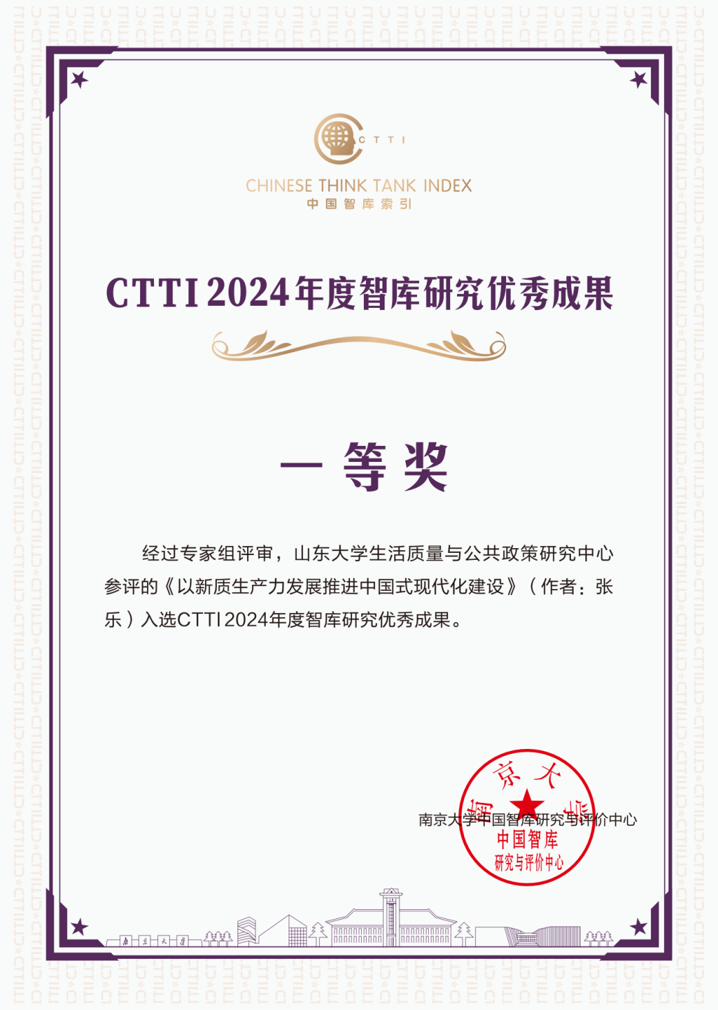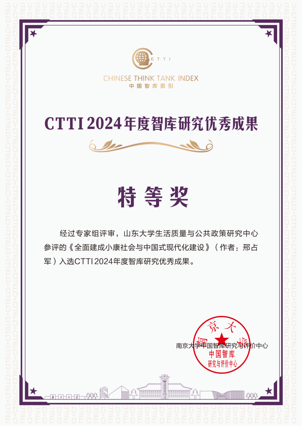 生活质量与公共政策研究中心于2022年入选中国智库索引(CTTI)来源智库,并有多项成果荣获优秀成果奖。
