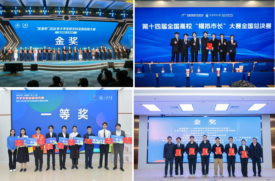 智育增慧,激发创新能力。学院聚焦国家发展战略,深耕学术育人平台,打造“政学赛研”学术创新生态链,培育出模拟市长、模拟两会、模拟联合国、政思茶话会等一大批优质品牌活动,“政”启未来学业辅导站获批重点建设项目。积极组织学生参与全国模拟政协提案征集、“挑战杯”揭榜挂帅专项赛等重要赛事,重点培养、持续孵化,引导学生将专业知识付诸实践,在亲身体验、亲身参与中感悟知政为公理念,拓展国际视野、厚植家国情怀。育人成绩斐然,学院学子在第十九届“挑战杯”揭榜挂帅专项赛中荣获一等奖1项、二等奖2项、三等奖1项,获奖数量居全校首位;在2024年大学生新文科实践创新大赛中斩获一金三铜;第二届IPv6技术应用创新大赛全国总决赛二等奖;在外交知识大赛中荣获“外交新秀奖”;在第十四届全国高校“模拟市长”大赛荣获一等奖;在“SDU TALK”学生创新大讲堂中获金奖银奖各一项;在工口实验室