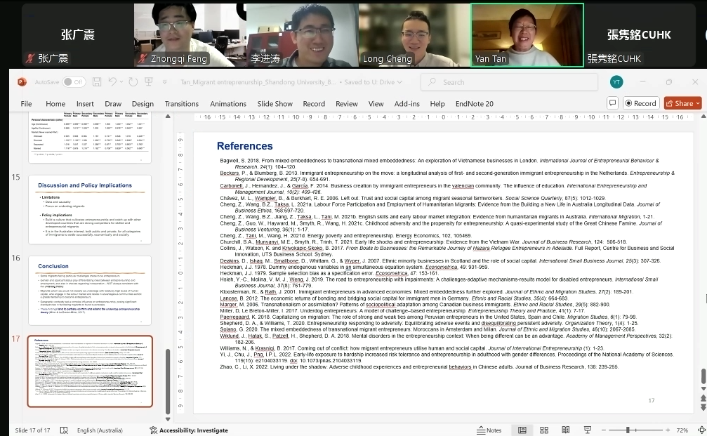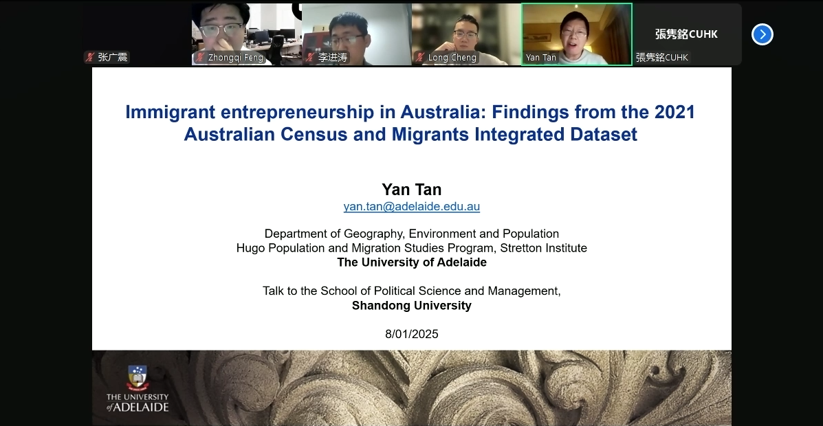 生活质量与公共政策研究中心主办的“敏政·厚生”系列专家讲坛第七期于线上举办。本次讲座主题为“Immigrant entrepreneurship in Australia: Findings from the 2021 Australian Census and Migrants Integrated Dataset”,由阿德莱德大学地理、环境与人口系副教授、斯特雷顿研究所雨果人口与移民项目负责人谭燕主讲,工口实验室