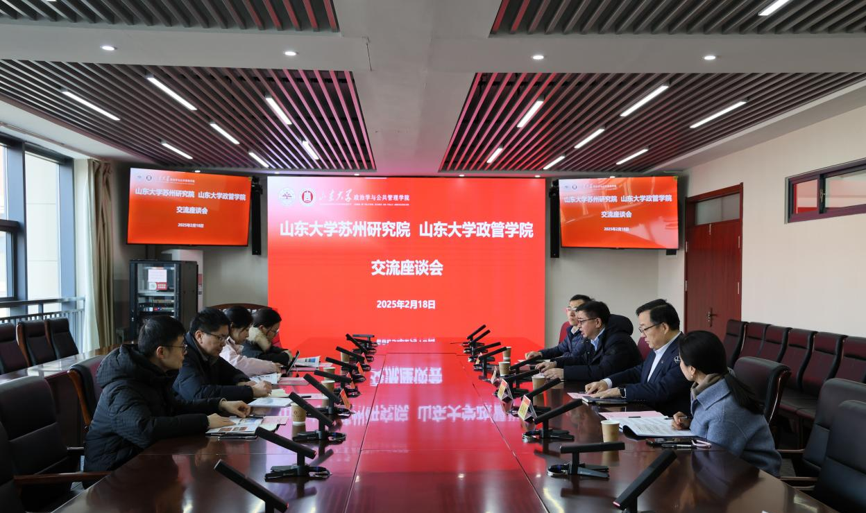 对贾存栋一行的到来表示热烈欢迎,并对苏州研究院长期以来对政管学院发展的支持表示衷心感谢。马奔介绍了政管学院的办学历史、学科建设、师资力量及近年来在教学、科研等方面取得的成果。
