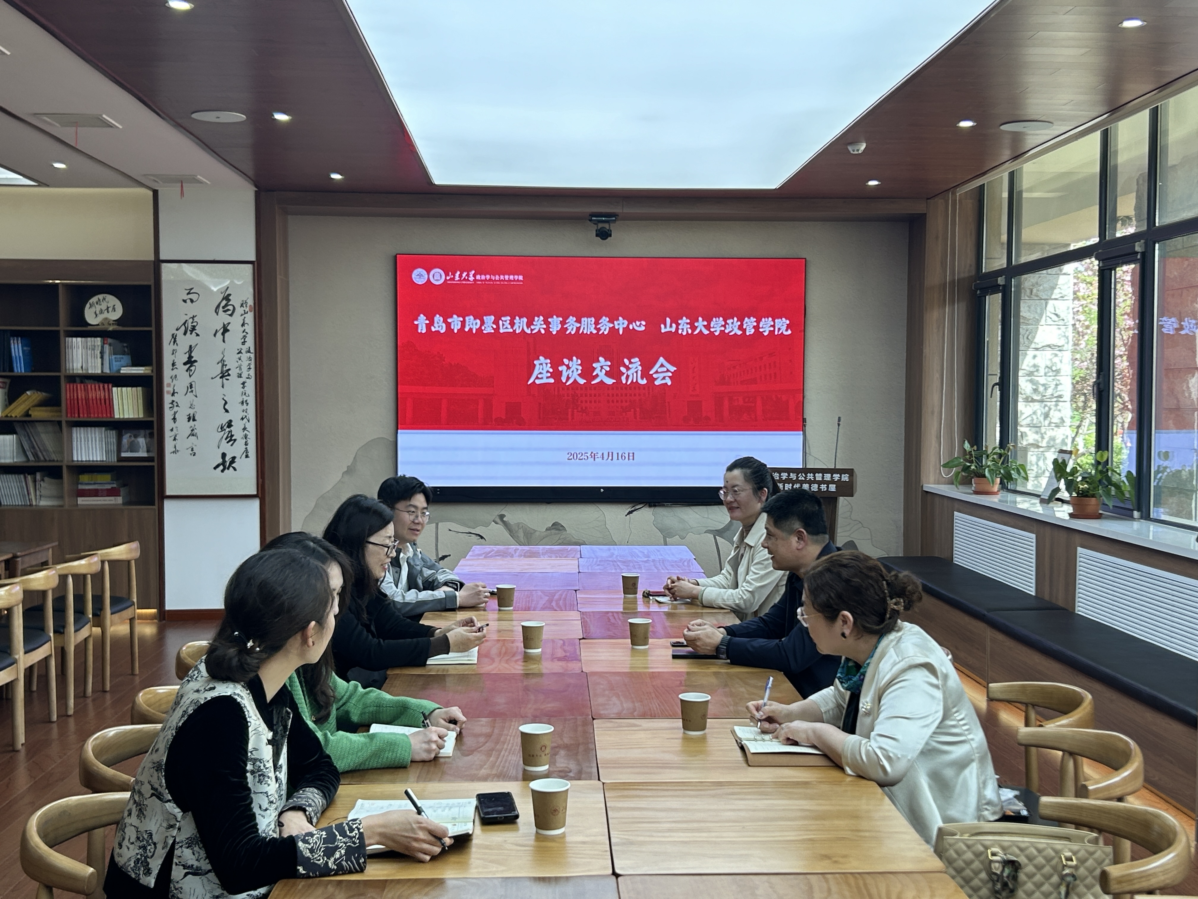 交流座谈会在新时代美德书屋举行。即墨区机关事务服务中心主任黄勇等一行3人参与会议,学院党委副书记马桂兰及辅导员代表参加座谈交流。
