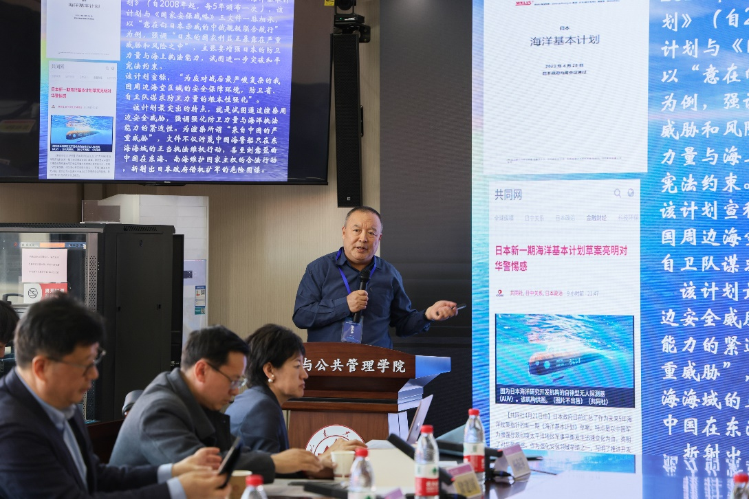 中国社会科学院大学教授王键围绕“中日东海安全与危机管控——以钓鱼岛争端为线”主题,以日本海洋基本计划为切入点,分析其渲染钓鱼岛危机事态、不断扩张海洋领土的图谋。他同时也强调了中国在宣传维护工作上进一步紧跟最新研究的重要性与必要性,面对日本近年来在海洋主权安全方面的军事挑衅及台海问题,要做到心中有数并坚持斗争与发展,坚定推进中国式现代化进程。
