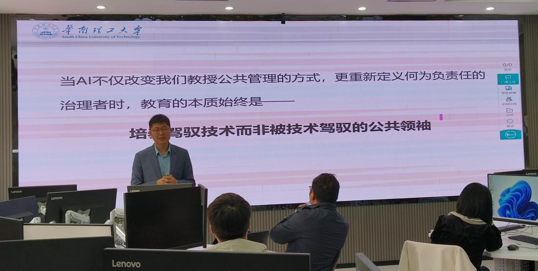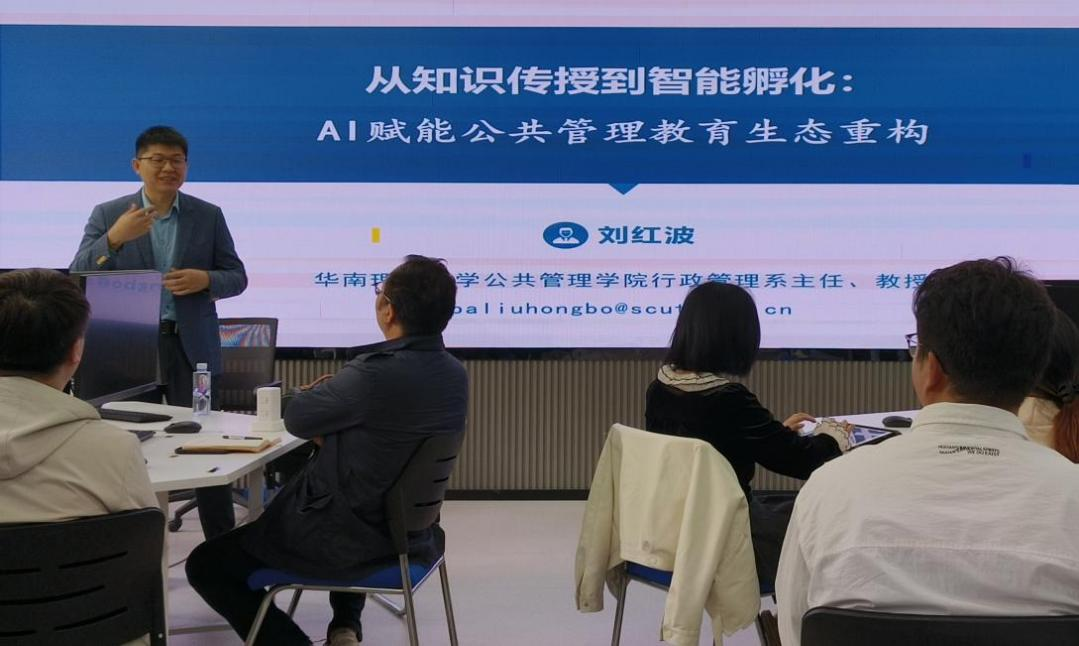 、智慧国家治理实验室主办的“鼎新”前沿讲堂第五期顺利举行。本次前沿讲堂主题为“从知识传授到智能孵化:AI赋能公共管理教育生态重构”,特邀华南理工大学公共管理学院教授、行政管理系主任、美国杜克大学政治学系访问学者刘红波教授主讲。工口实验室