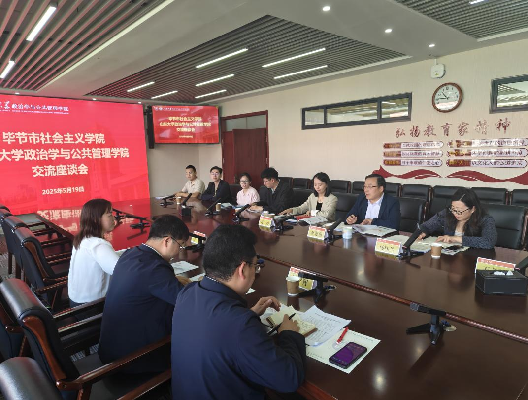 对毕节市社会主义学院一行表示热烈欢迎,并详细介绍了学院在统战学科体系构建、研究生培养等方面的创新举措。