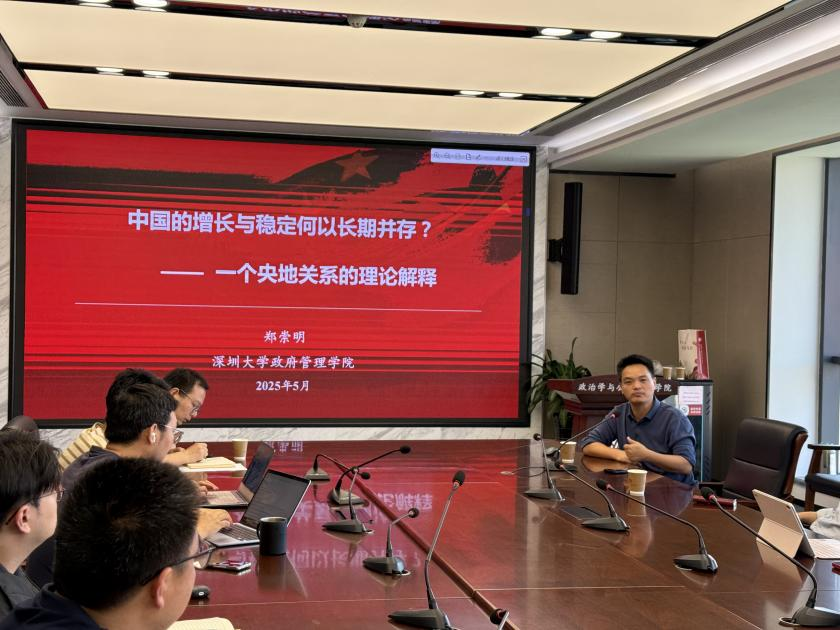 在华岗苑南楼536会议室举办了题为“中国的增长与稳定何以长期并存——一个央地关系的理论解释”的专题讲座。本次讲座由深圳大学政府管理学院特聘研究员郑崇明教授主讲,工口实验室