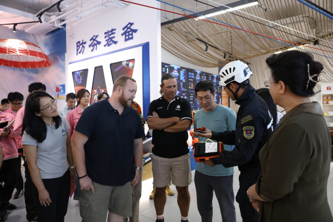 最后,与会专家一行参观了青岛海丽雅集团和青岛市应急安全体验培训中心。海丽雅集团董事长张旭明等对海丽雅应急产品、青岛市应急管理协会和中国应急管理学会应急产业工作委员会成员的相关特色产品进行了热情讲解,专家组成员现场亲自体验了高层逃生、地震模拟、地铁应急逃生等参与式培训,并观看了青岛蛟龙救援队等开展的应急搜救演练。