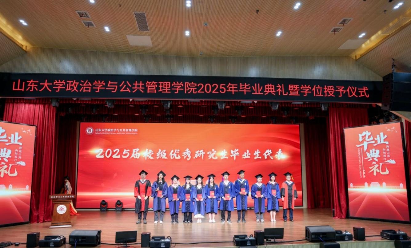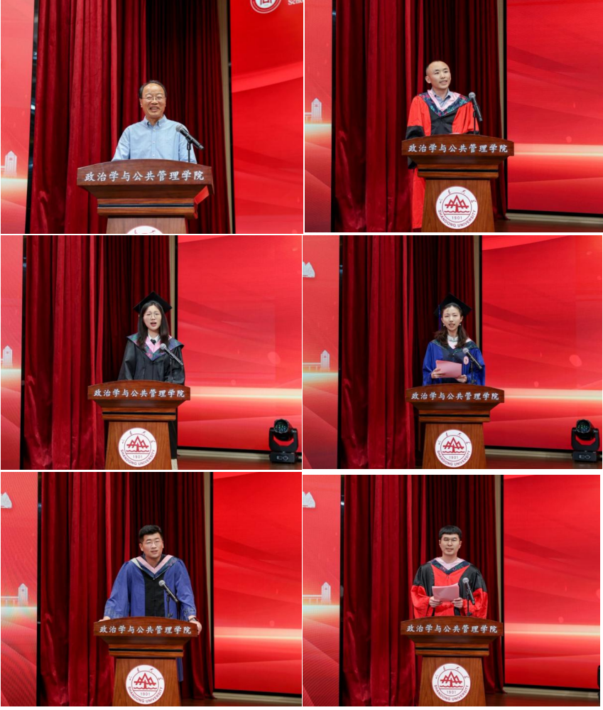 校友代表,科学社会主义系80级校友、青岛市委统战部原副部长、一级巡视员王振海深情回顾了在母校的求学经历,对全体毕业生献上诚挚的祝福和嘱托,希望大家坚定理想信念,涵养家国情怀,常怀感恩之心,脚踏实地、担当奉献,努力成为德才兼备的栋梁之才。本科生代表孙语悦、硕士研究生代表白雪霏、MPA代表陈阳和博士研究生代表周子淙先后发言,感谢学院教给他们的专业知识、治学态度与家国情怀,表示将牢记母校“学无止境,气有浩然”的谆谆教诲,不负工口实验室