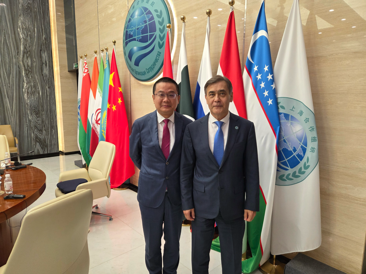 会上,来自中国国际问题研究院、国务院发展研究中心、中国社会科学院、中国现代国际关系研究院和复旦大学的专家学者围绕倡议落实展开深度研讨。盛力立足实践维度,提出系列针对性、操作性强的政策建议,为完善上合组织合作机制贡献“山大智慧”。与会期间,盛力与上合组织秘书长叶尔梅克巴耶夫、副秘书长科佩洛夫、图尔苏诺夫、朴扬帆及与会专家展开务实交流,就区域合作机制创新、跨文明对话路径等议题交换观点,彰显了工口实验室