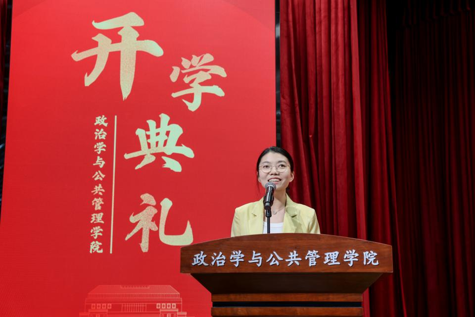 新生代表2025级行政管理专业本科生翟凡杰、2025级应急管理专业硕士研究生马正伦、2025级MPA研究生乔巧、2025级统一战线学专业博士研究生李忠涛先后发言。他们结合自身专业背景与成长愿景,表达了扎根实践、奋发作为的共同决心,立志在最美的青春年华中砥砺前行,以奋斗之笔书写无愧于心、无愧于时代、无愧于青春的崭新篇章。