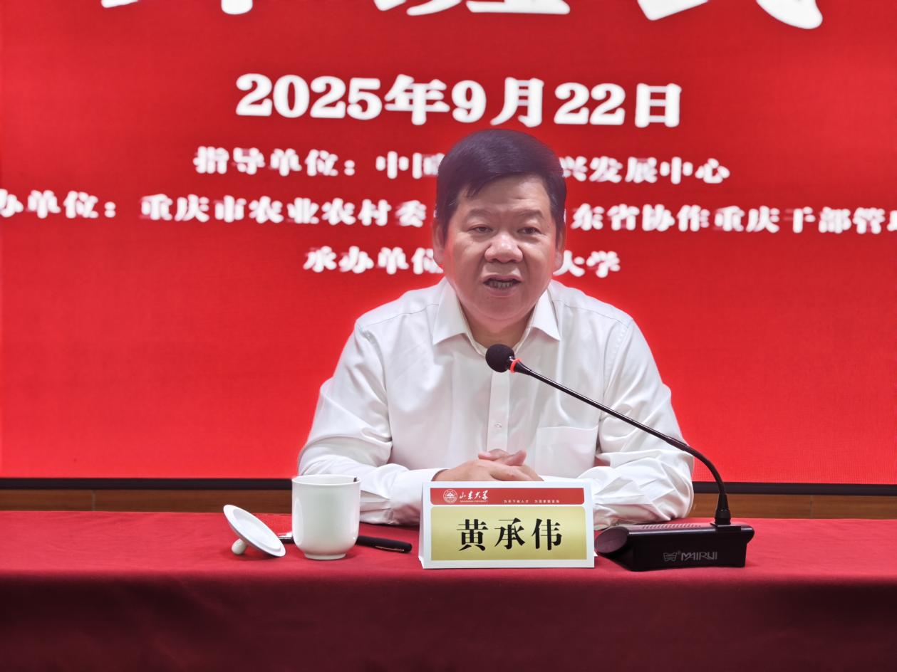 黄承伟在致辞中表示,“千万工程”重大决策与东西部协作重大战略举措是贯彻落实习近平总书记关于深化东西部协作重要论述的具体行动,是巩固拓展脱贫攻坚成果同乡村振兴有效衔接的重要抓手,也是推动鲁渝协作高质量发展的创新实践。全体学员要深入学习领会新发展阶段东西部协作的新任务新要求;要立足重庆山区库区实际,结合岗位需求,将学习成果转化为工作实效;要加强交流互鉴,在思想碰撞中开拓思路、提升能力;要严守培训纪律,展现新时代协作干部的良好风貌。