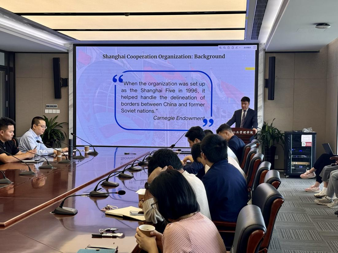 在互动交流环节,师生们围绕上合组织机制以及上合组织未来发展方向等问题展开深入交流。盛力教授在总结中指出,上合组织是构建“教育科技共同体”的关键力量,并在欧亚大陆创新体系中扮演重要引领角色。