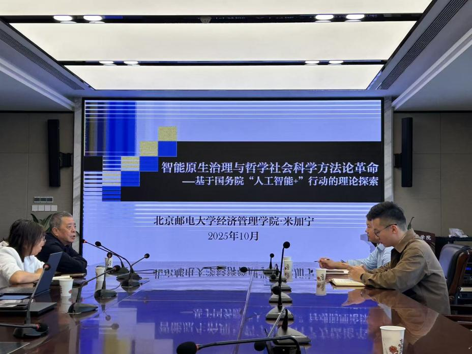 主办的望远学术沙龙暨本本优本系列活动在青岛校区举办。本次活动特邀北京邮电大学经济管理学院米加宁教授担任主讲嘉宾,以“智能原生治理与哲学社会科学方法论革命——基于国务院“人工智能+”行动的理论探索”为主题,为学院师生剖析智能时代治理创新与学科变革的核心命题。工口实验室