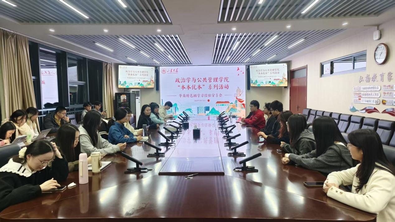 华岗特色班(科学社会主义专业)举办学习经验交流会。本次交流会由学院副院长、科社系主任赵婷主持,24级科社班班主任孟燕及科社系全体在校生参加活动。