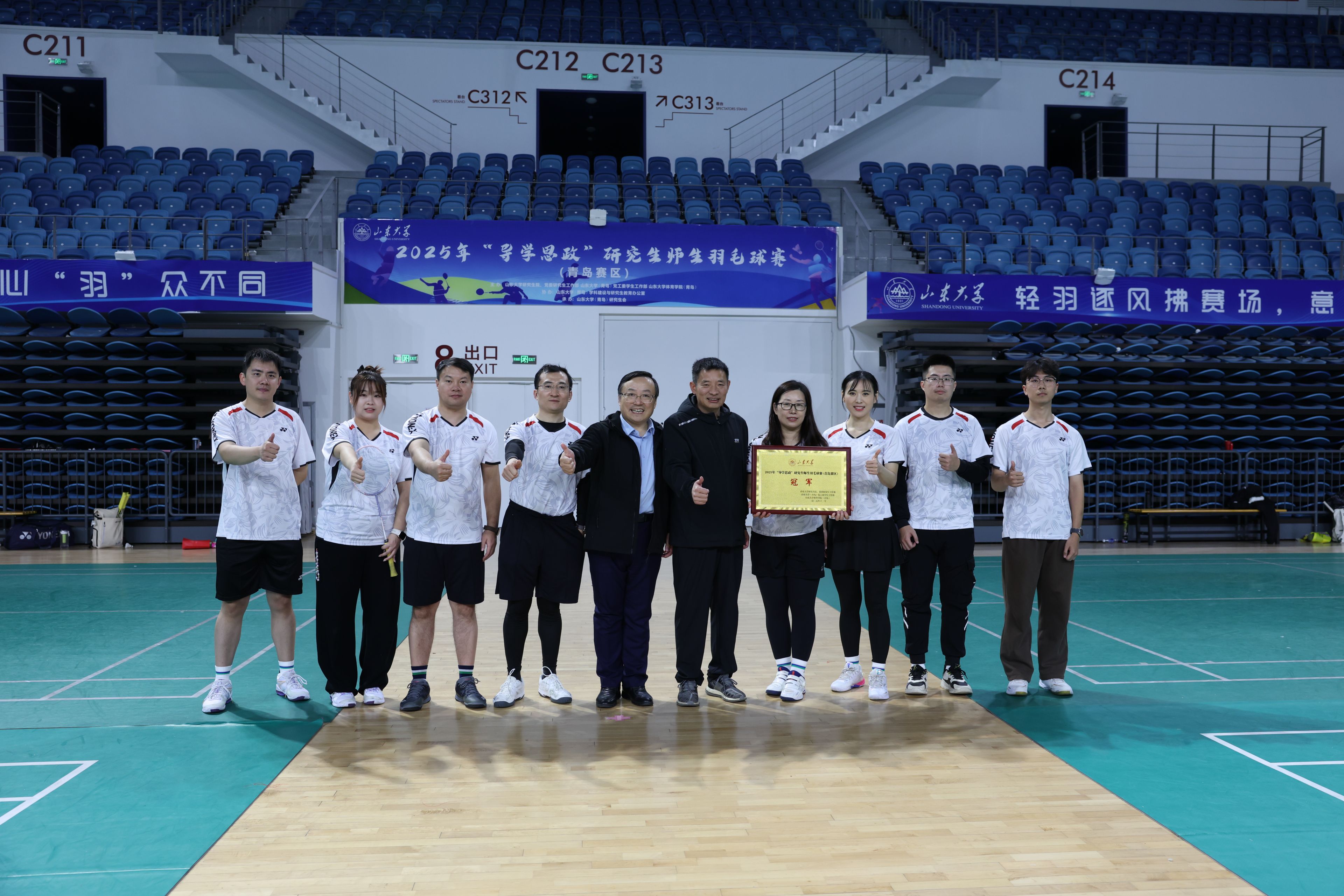 研究生师生羽毛球赛是学校研究生经典品牌“导学思政”育人体系的重要载体。该赛事一直是学院深耕导学互动、推进五育融合的重点平台,学院始终给予全方位支持,通过夯实训练保障、促进师生互动,营造了浓厚的运动氛围,不仅激发了锻炼热情,更锤炼了意志品质与团队精神。未来,学院将以此次蝉联佳绩为新起点,持续深化体育育人实践,把赛场上凝练的拼搏精神、协作意识与坚韧品格融入导学交流、科研攻关与人才培养的全过程,以体育铸魂、以精神赋能,在践行“山大体育,育贤图强”理念的道路上矢志前行。