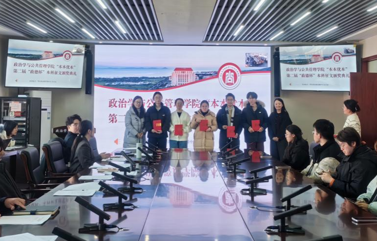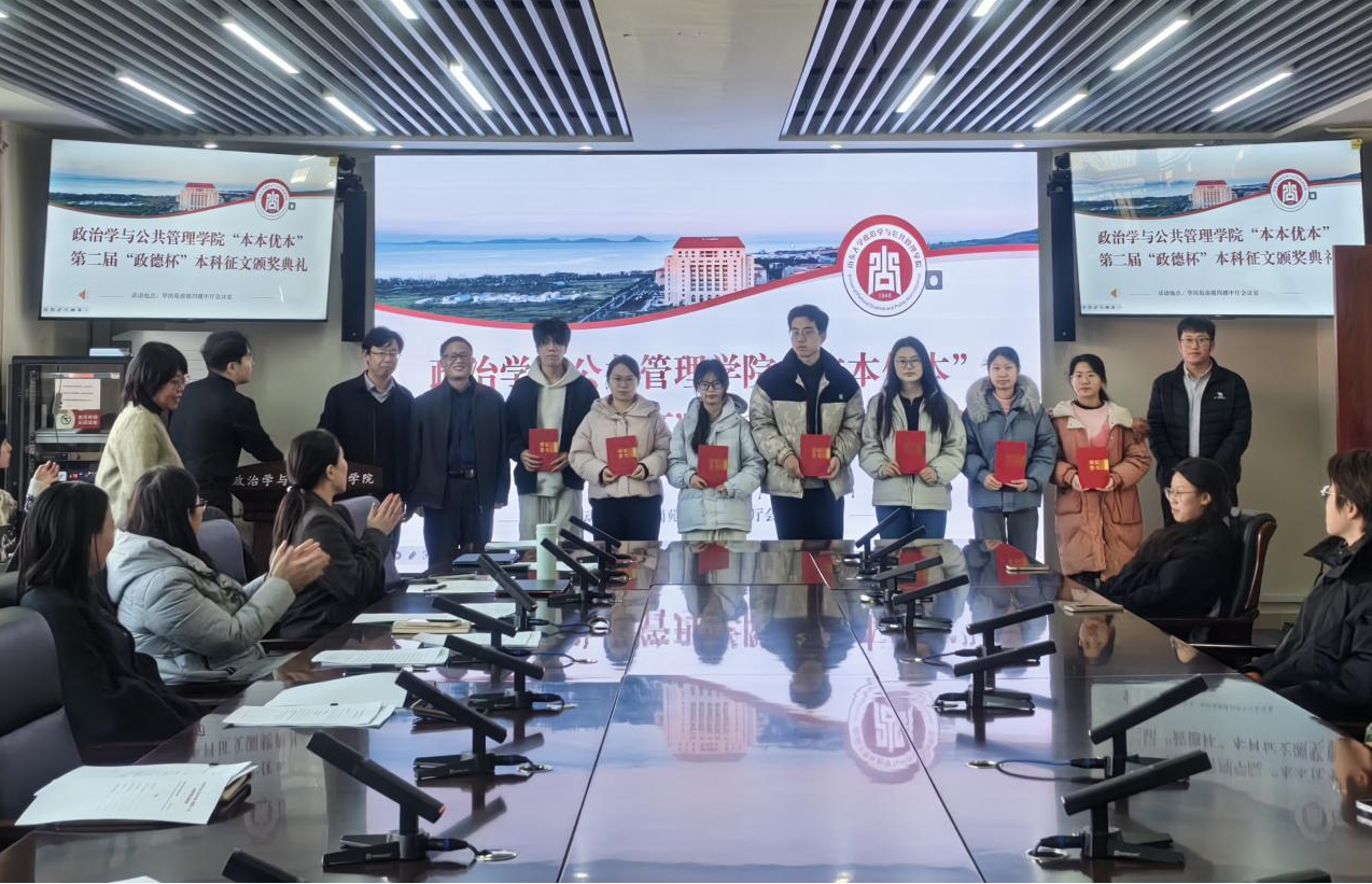在颁奖环节,赵婷宣读了本届征文比赛获奖名单。学院领导与教师代表为获奖学生颁发荣誉证书,鼓励大家在今后的学习中继续保持严谨态度与求索精神,将学术研究与社会实践紧密结合,在未来学习与实践中进一步展现政管学子的责任担当与专业风采。