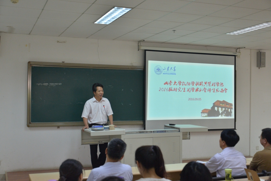 的校史,使得同学们对山大有了更加清晰的认识。在讲话中,盖书记着重强调了我校的办学宗旨“为天下储人才,为国家图富强”几个字的来源及内涵,并提醒大家时刻牢记山大校训“学无止境,气有浩然”,以永不满足的执着精神在学术和人生的历程中勇于登攀,不断追求文化知识、技术能力、人文素养和道德情操的完美境界。在开学典礼的最后,党委副书记彭展做总结性讲话,他表示希望同学们能够充分利用研究生期间的各种资源,不虚此行,成长为合格的社会主义接班人。