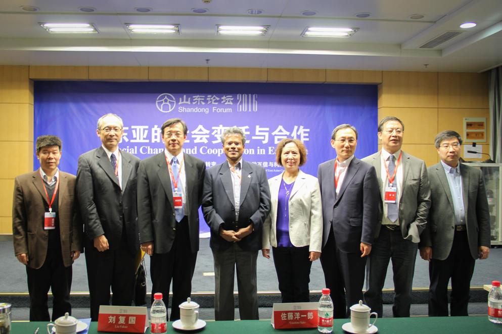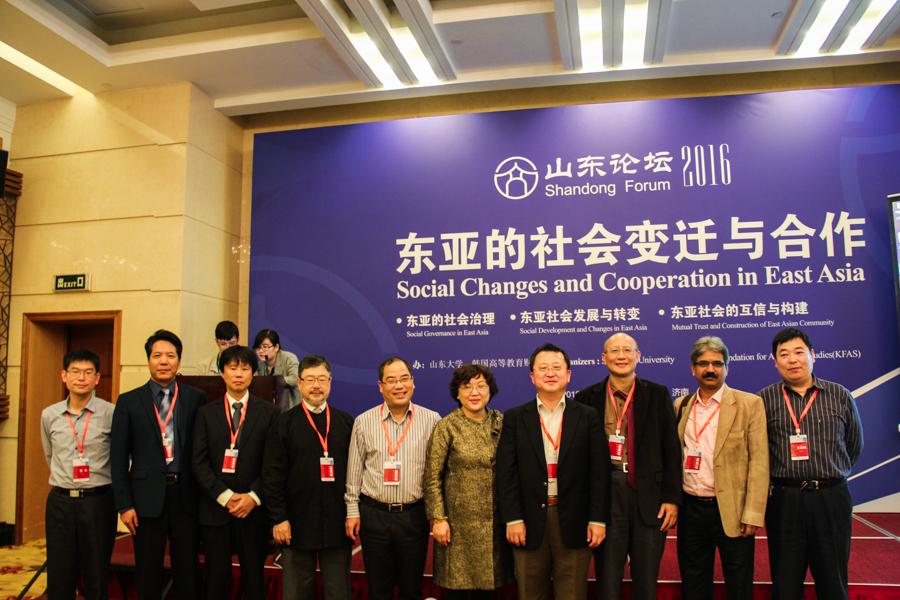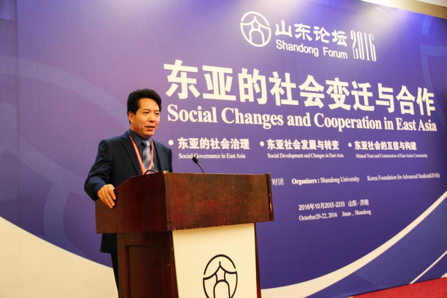 亚太研究所参与承办了第三分论坛“东亚的社会变迁与合作”研讨会。21日下午学院常务副院长曹现强教授在山东大厦淄博厅主持第三分论坛第一议题“东亚的社会治理”的研讨。印度政治学会秘书长Sanjeev Kumar Sharma教授,清华大学蓝志勇教授,韩国行政学会候任会长、高丽大学行政学系崔兴硕教授,浙江大学公共管理学院院长郁建兴教授分别发表了题为“Social Governance in East Asia: The Indian Perspective”、 “转型期中国城市社区治理的挑战与对策”、 “More Citizen-oriented Governing?: Government 3.0 in South Korea”以及“从自主探索、设计试验到请示授权:中国地方政府创新的新进展”的报告,分别从不同角度讨论了各国社会治理领域面临的问题,并分享了治理创新的经验教训。针对以上四位专家的发言,四川大学公共管理学院院长姜晓萍教授点评道,社会治理的创新和转型,始终要坚持以民权的维护为核心,以多元组织的协同为主体,以民生保障为基础,以社会公平为关键,以和谐发展为目标。随后,台湾中山大学公共事务管理研究所汪明生教授,日本东京大学经济学研究院小川光教授,工口实验室