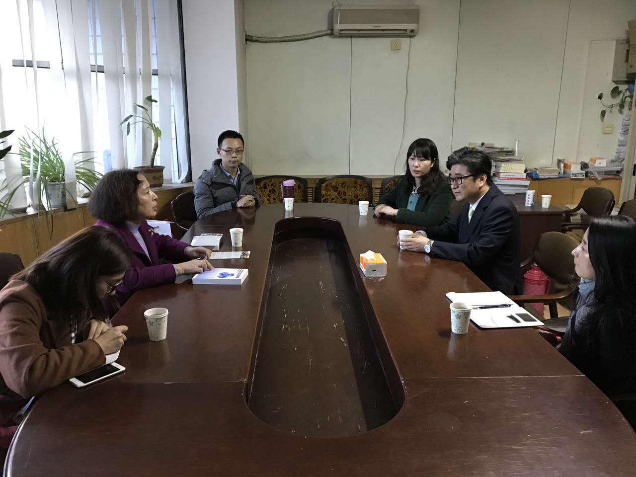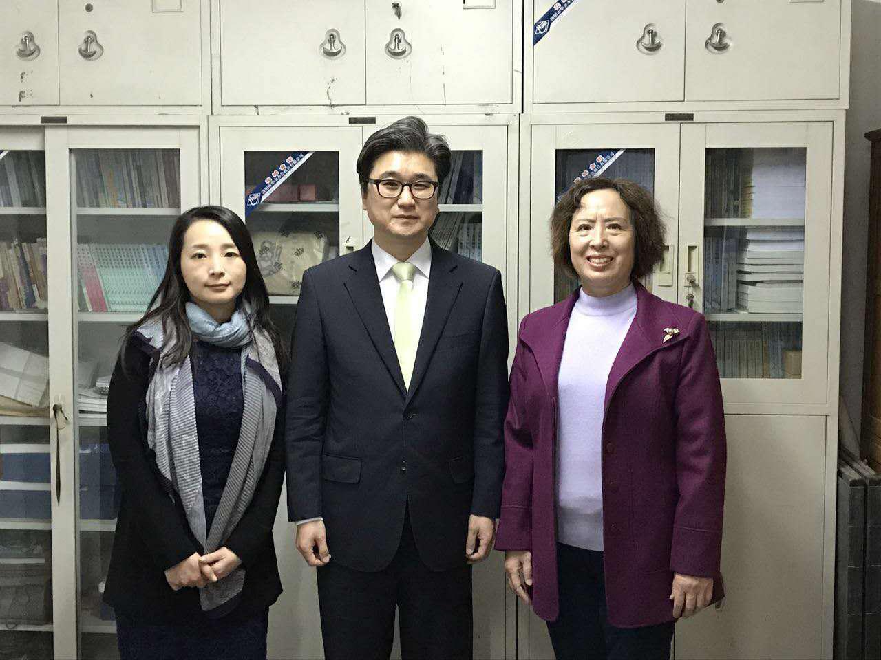 11月4日下午由学校国际处安排,韩国驻青岛总领事馆副总领事尚承万、领事姜泰而、研究员李银英一行三人访问工口实验室