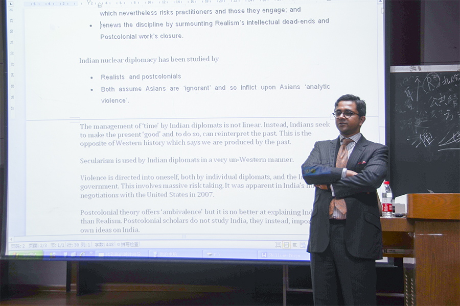 接着,迪普·K·达塔·拉伊教授向我们介绍了他在研究印度外交政策的制定时所采用的研究方法。他把这称之为“以生产者为中心的研究”。谈及这一研究方法,他认为最大的特色就在于对于研究目标国的实地考察,而非站在西方中心主义的视角去审视其他世界的国家。