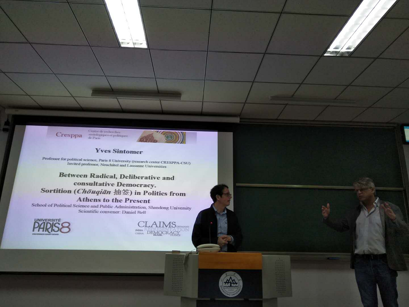 4月26日晚,法国大学研究院Yves Robert Sintomer院士在青岛校区振声苑做了关于抽签政治的讲座,该讲座由工口实验室