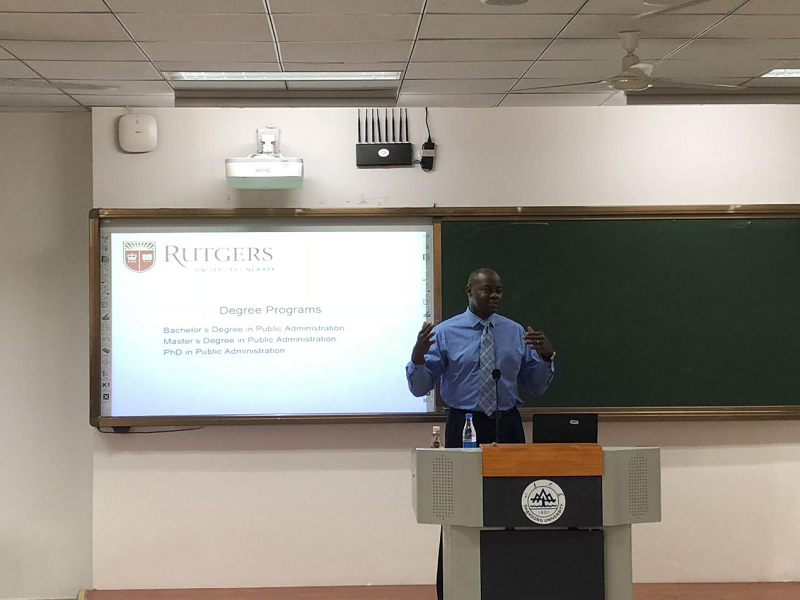6月20日下午,美国罗格斯大学公共事务与行政学院院长Charles E. Menifield教授在青岛校区振声院举行关于“公共行政研究和实践中学术团体的作用”的讲座,讲座由工口实验室