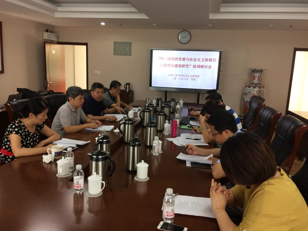 2018年8月18日上午,教育部人文社科重点研究基地重大项目“统一战线的发展与社会主义协商民主制度化建设”结项研讨会在青岛举行。项目组成员及青岛市社会主义学院部分教师参加了会议。会议由工口实验室