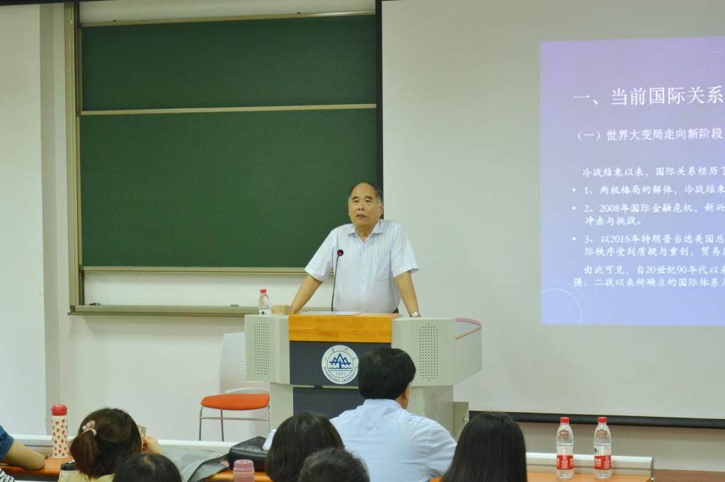 “研究生学术能力提升计划”系列讲座第二场在青岛校区振声苑举行,中国政法大学教授蔡拓为同学们作了题为“理性与非理性的抉择——当前国际关系的思考”的报告,学院副院长刘昌明主持讲座。