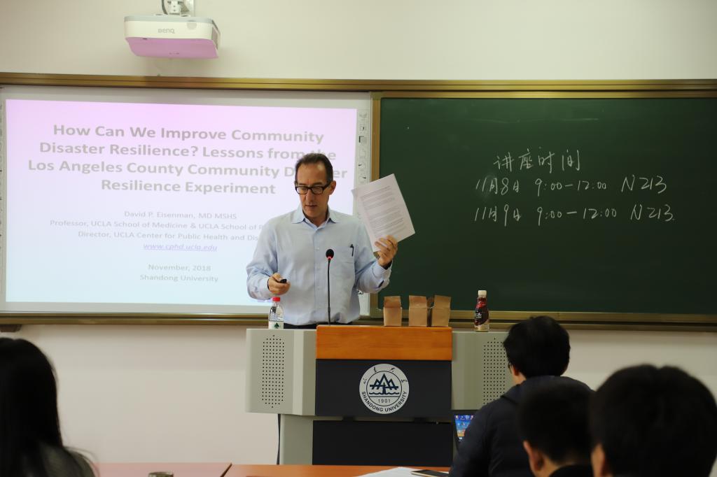11月6日,Eisenman教授以“洛杉矶韧性社区建设与研究”为题,讲述了公共卫生如何将社区恢复能力的概念转化为实际项目以及如何衡量结果。他认为,有更多合作历史的社区、更多的邻居信任、志愿精神和凝聚力的社区灾后恢复得更快,这些社区是有弹性的社区。弹性是着眼于现有的资源和关系网络,以综合的方式工作,建立和利用伙伴关系,帮助社区适应各种急性和慢性的社区压力。