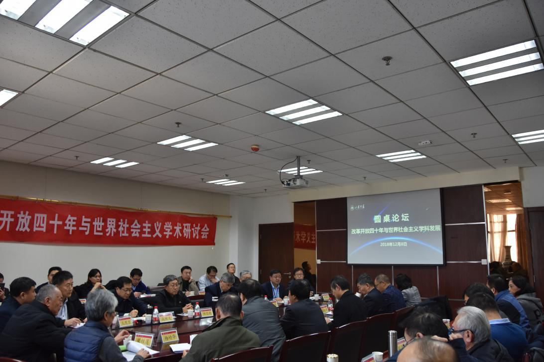 下午的圆桌论坛以“改革开放四十年与世界社会主义学科发展”为主题进行了研讨。与会专家学者在回顾和总结中国改革开放四十年的成就与经验、反思科学社会主义与国际共产主义历史发展的基础上,对世界社会主义学科建设的历史经验、未来发展方向等议题展开了深入研讨。