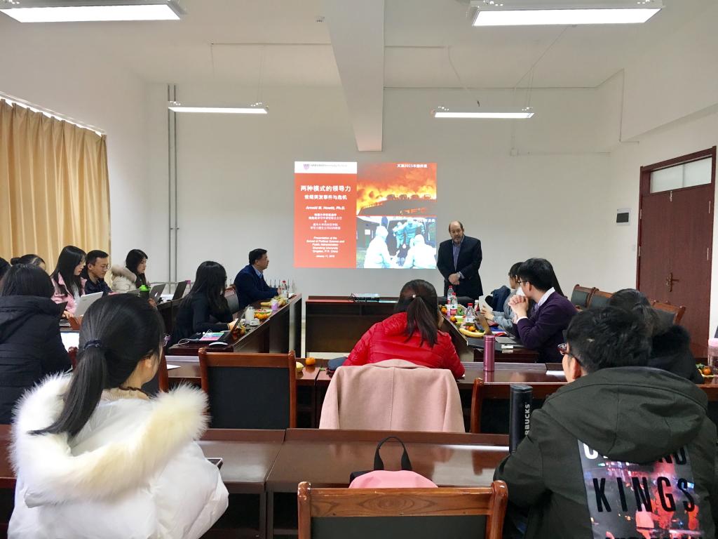 通过对两种领导力模式进行分析,Howitt教授认为“常规突发事件”与“危机”有迥乎不同的特征。因此紧急情况的处理者需要采取不同的领导方式来应对每种类型所带来的挑战。作为领导者,应该是“双手通用”,即能够在两种领导模式中运作自如。在互动环节,参加讲座的各位同学踊跃提问,Howitt教授对相关问题进行了详细的回答。最后,马奔教授对本次讲座进行总结。