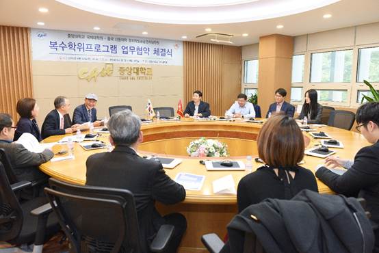 与韩国中国大学国际问题研究生院关于研究生项目合作备忘录的正式签约交换仪式。双方还就今后共同举办学术会议问题达成了初步共识。