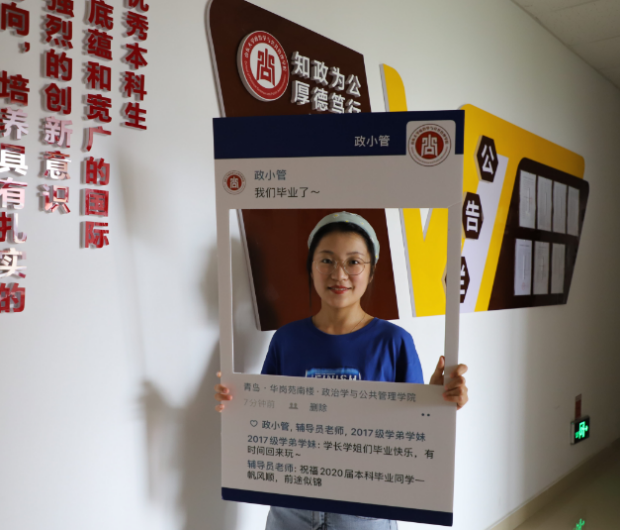 “我与政管”留影活动。学院制作了包括全体毕业生照片的创意背景板,并在院楼门厅摆放“I LOVE 政管”“青春政当时”等创意模型及其他创意板,以供毕业生进行合影留念。