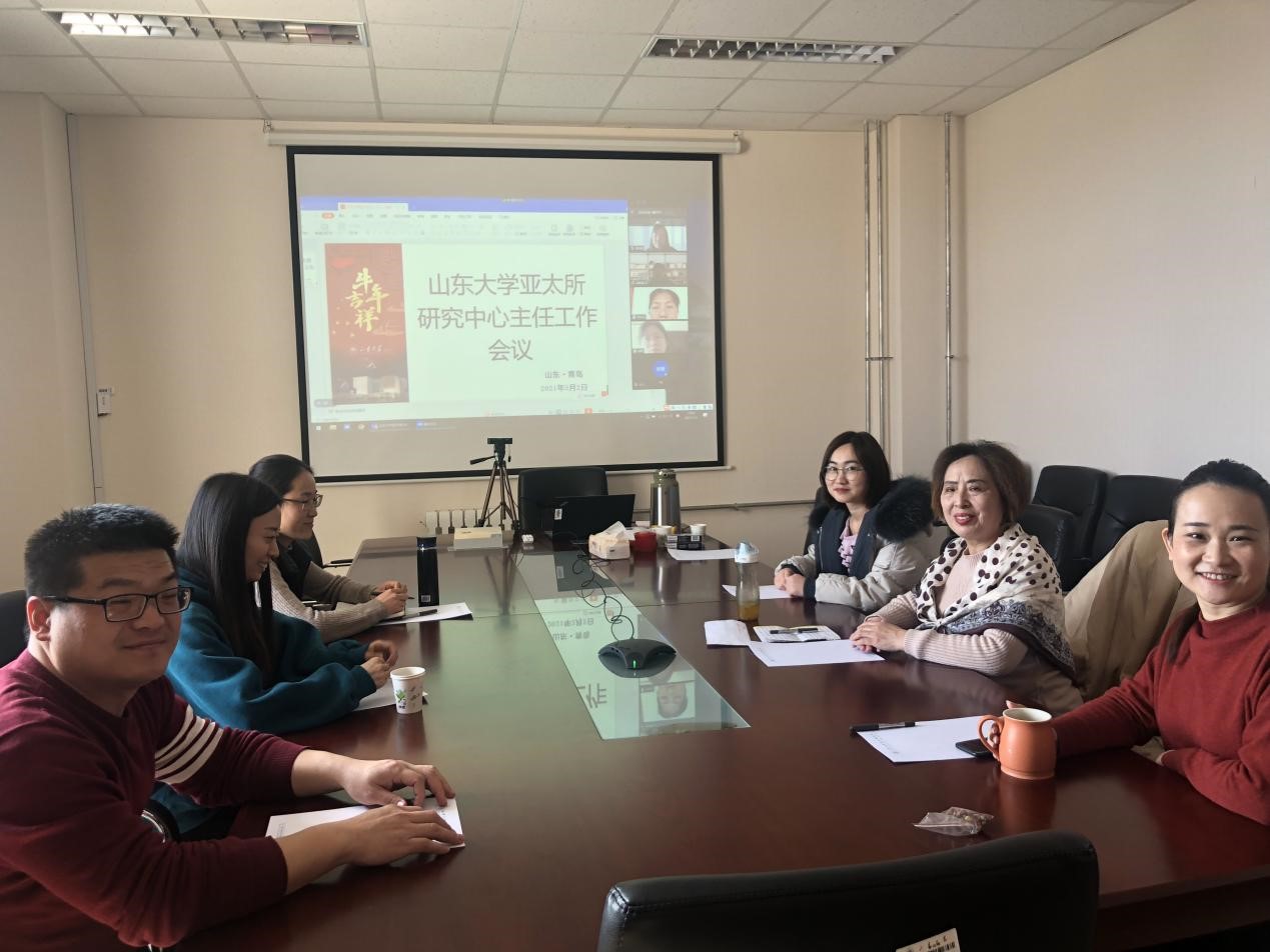 在会议第二议程中,亚太所各中心主任、副主任就以上工作计划部署和实施进行了热烈讨论,基本确定了亚太所2021年学术研讨会的时间、形式以及各中心承担的任务;同时,将邀请和举办“社科与人文系列讲座”的任务落实到具体研究中心,明确了每个研究中心每学期至少邀请一位知名教师赴青岛校区进行学术讲座的任务。出于疫情对跨省人员流动影响的实际考虑,参会人员提出近期活动可以考虑线上举办讲座的形式获得诸位的认可赞同。