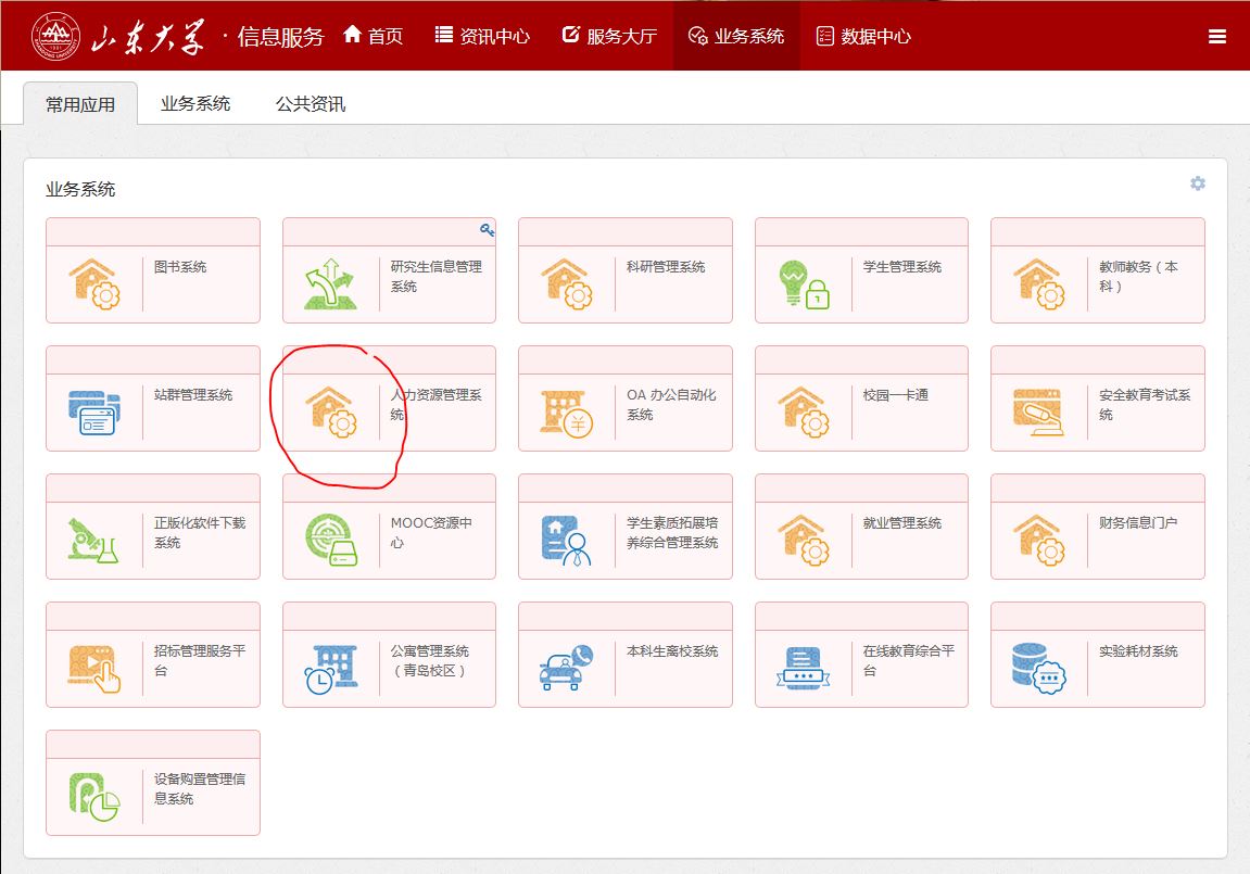 四、进入业务系统后点击“人力资源管理系统”
