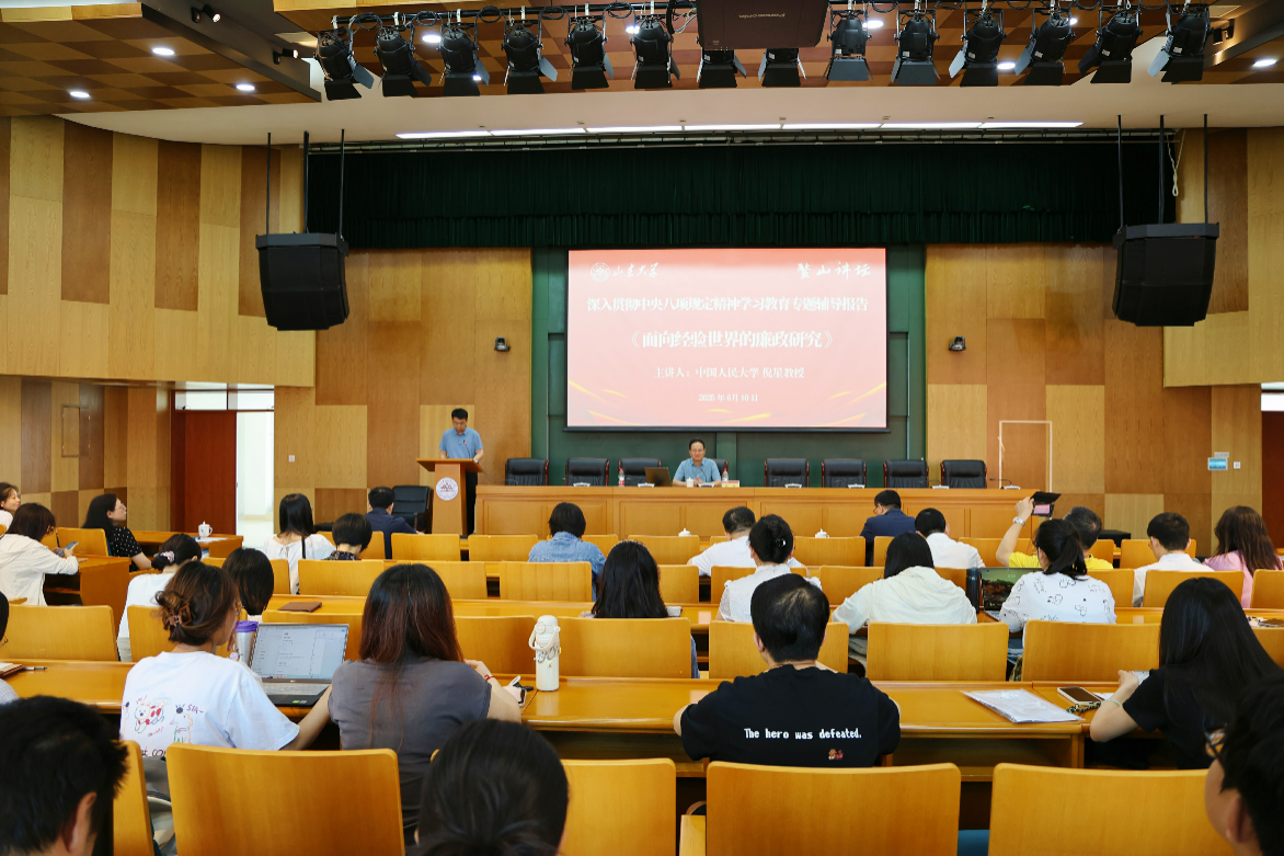 6月10日,中国人民大学纪检监察学院、公共管理学院教授、博士生导师倪星教授做客“鳌山讲坛”,作题为“面向经验世界的廉政研究”专题报告。青岛校区党工委组织宣传统战部部长王景瑞主持报告。